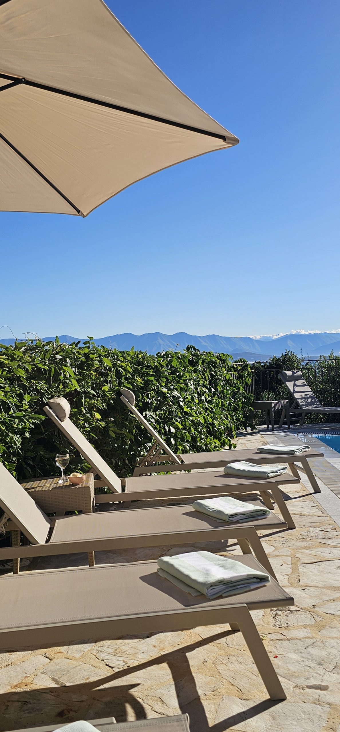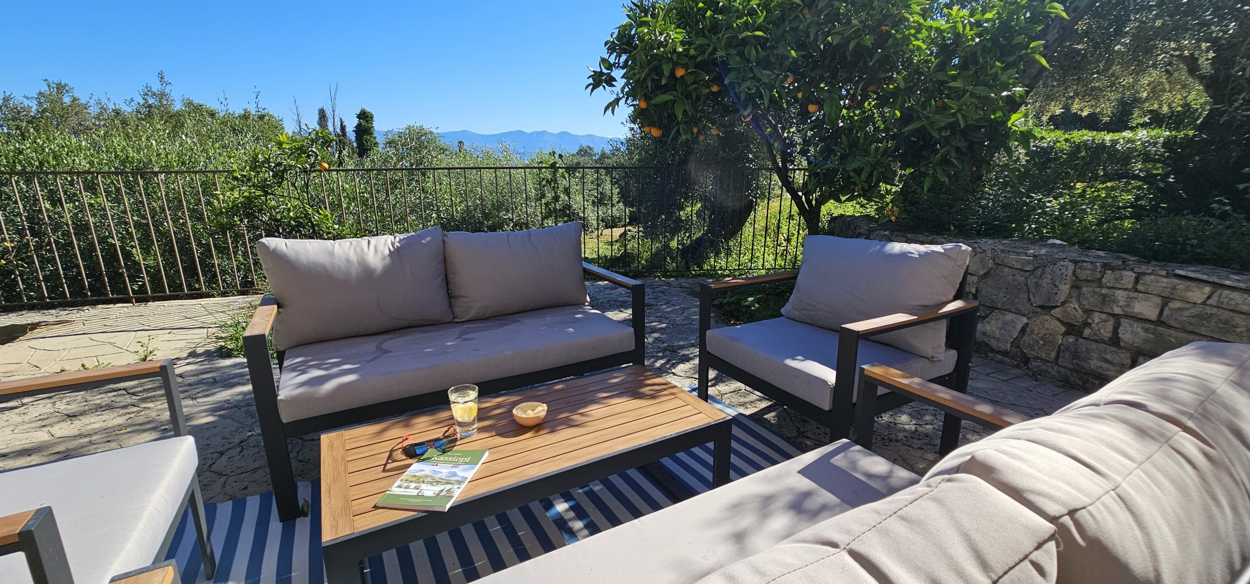 Nestled in the hills above the gorgeous village of Kassiopi, enjoy breath-taking views of the NE Corfu coastline, with views across to the Greek mainland and Albania.